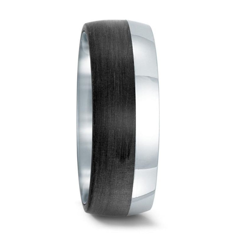 The Ascendant - Carbon Fibre & White Gold Wedding Band Ring
