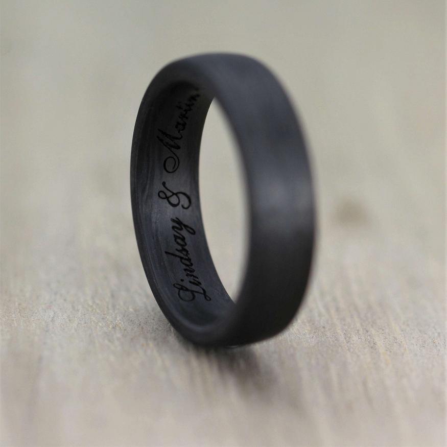 Every ring is unique as the Carbon Fibres will lay a little differently each time a ring is made. I hand wind the carbon Fibre, vacuum treat, then heat cure, making the carbon fibre exceptionally hard.