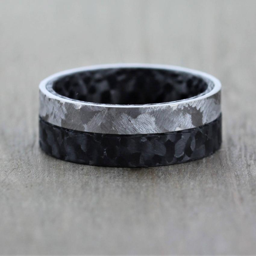 Custom Made 8mm, Forged Carbon Fibre and Titanium, Textured ring with comfort fit inside, perfect for personalized engraving.