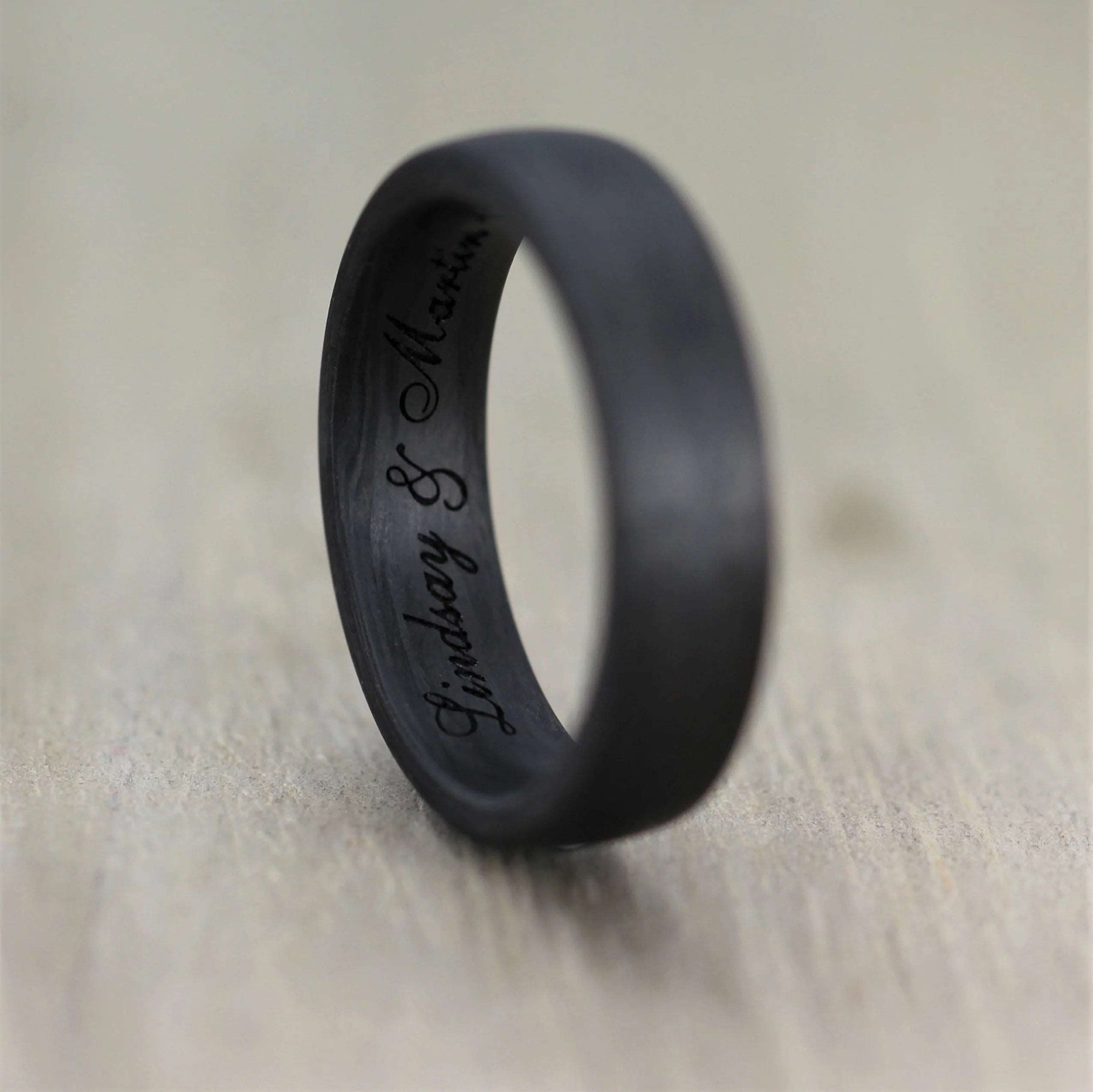 Every ring is unique as the Carbon Fibres will lay a little differently each time a ring is made. I hand wind the carbon Fibre, vacuum treat, then heat cure, making the carbon fibre exceptionally hard.