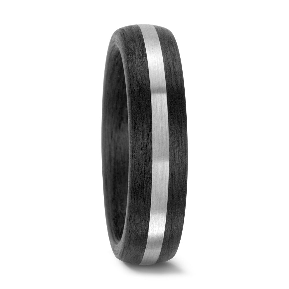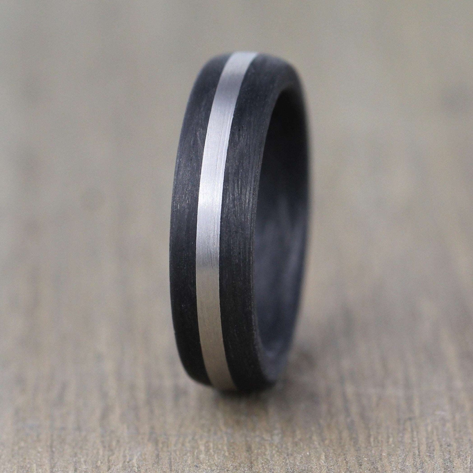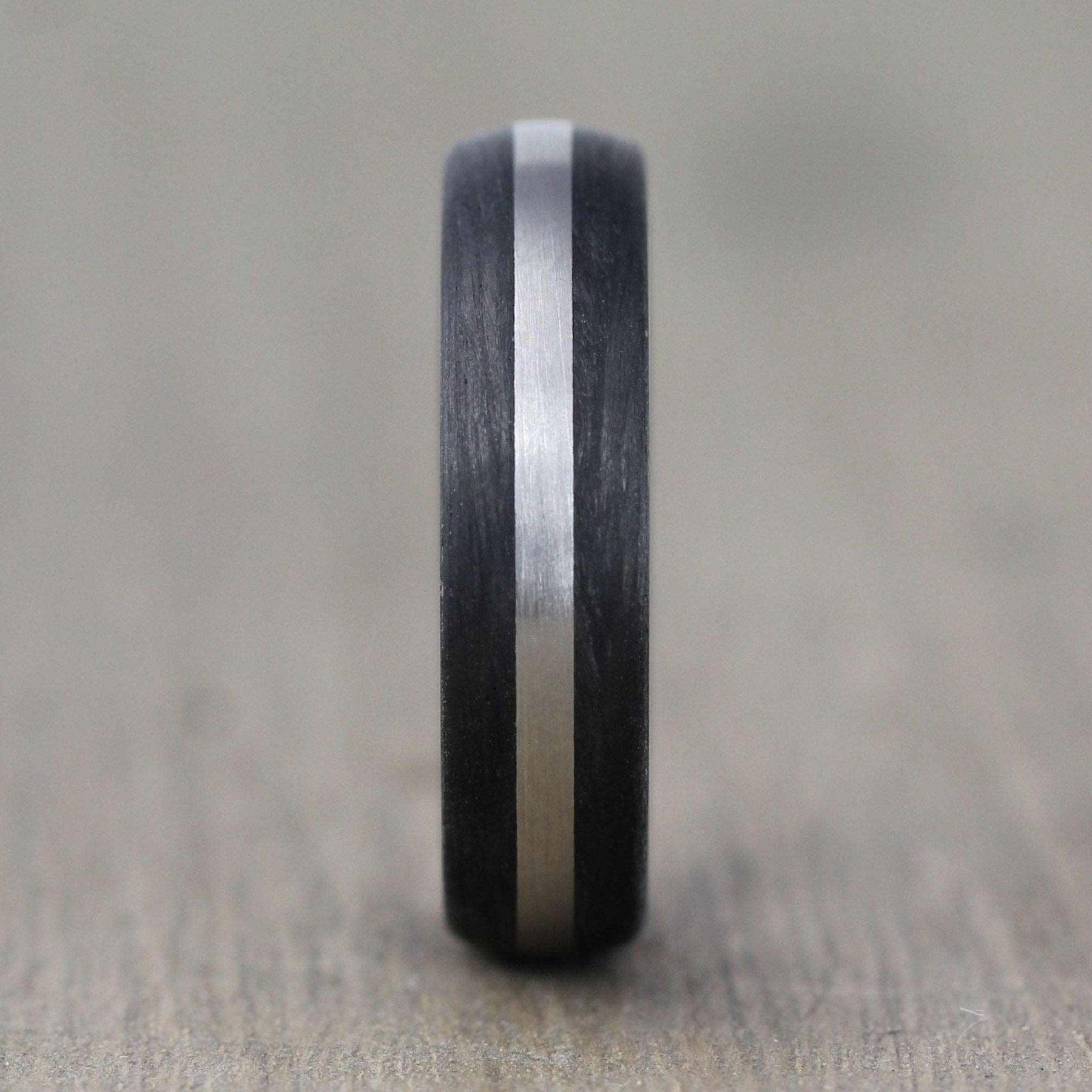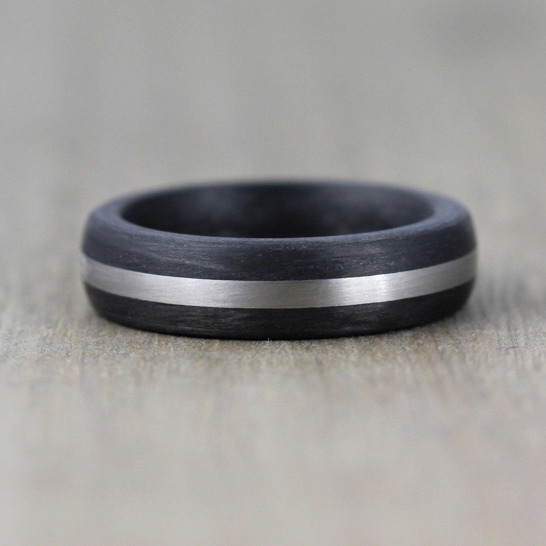Carbon fibre wedding ring band with a brushed Palladium inlay band, perfect for FREE, personalised engraving. 6 or 8mm Wide