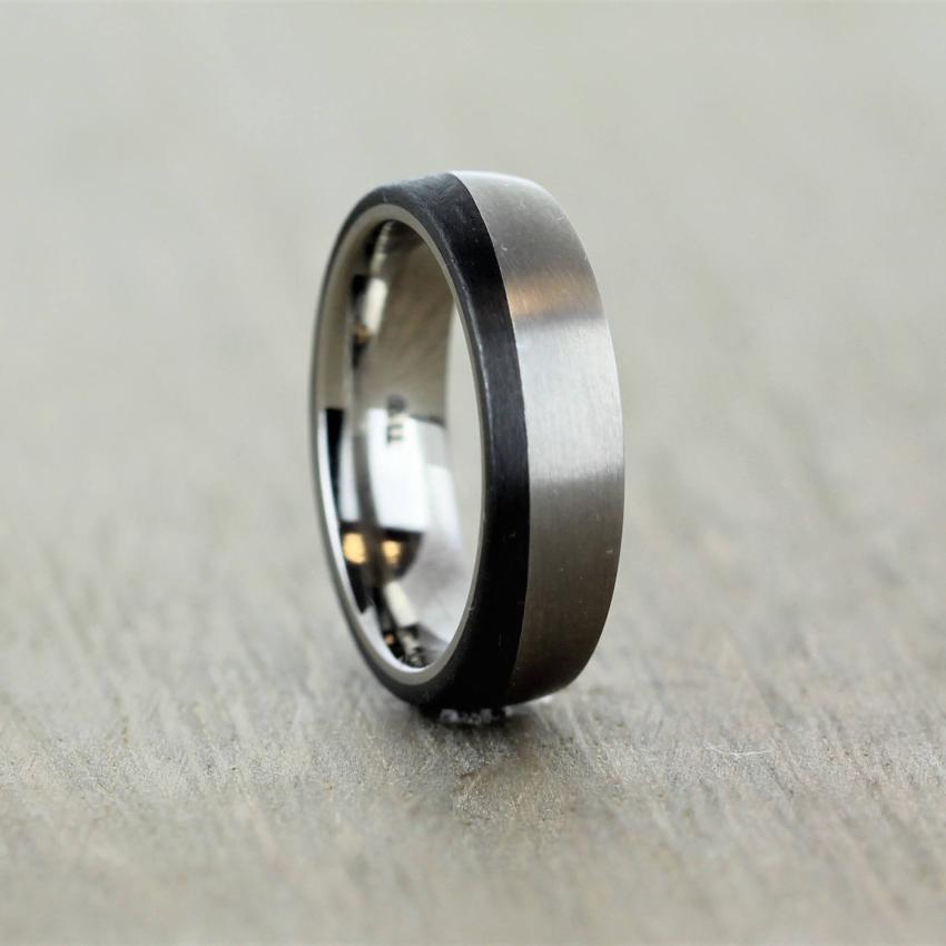 Titanium & Carbon Fibre wedding ring band. Domed outer with Ultra comfort fit inside