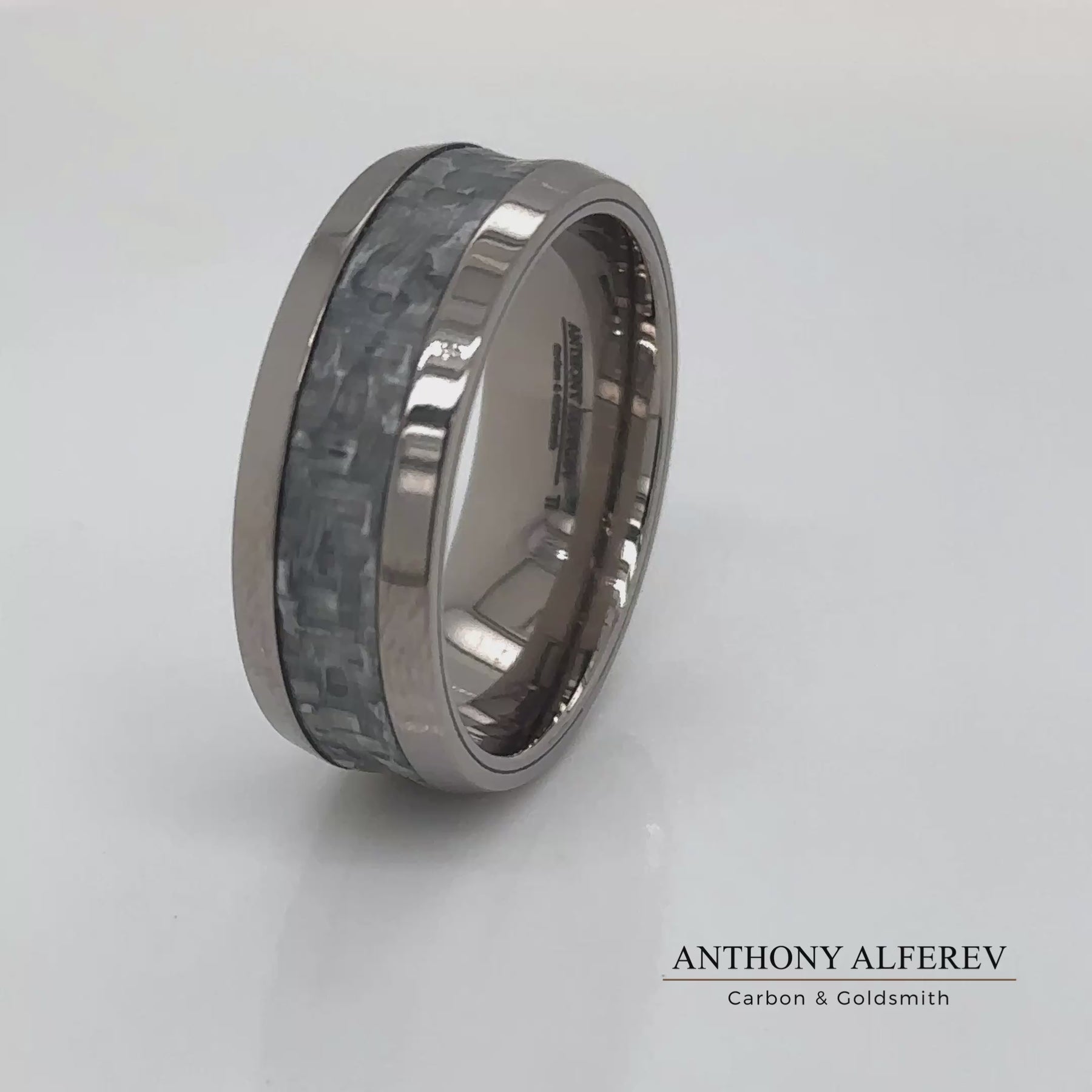 Light Grey Carbon Fibre Wedding ring band. Domed outer with Ultra comfort fit inside