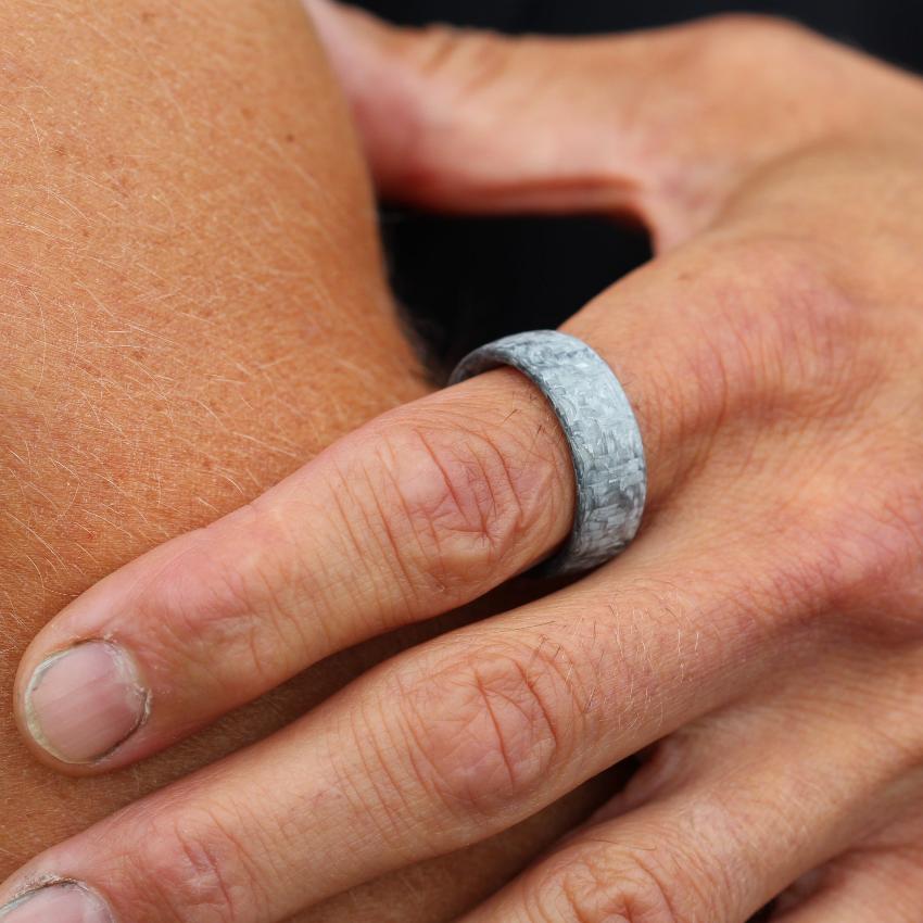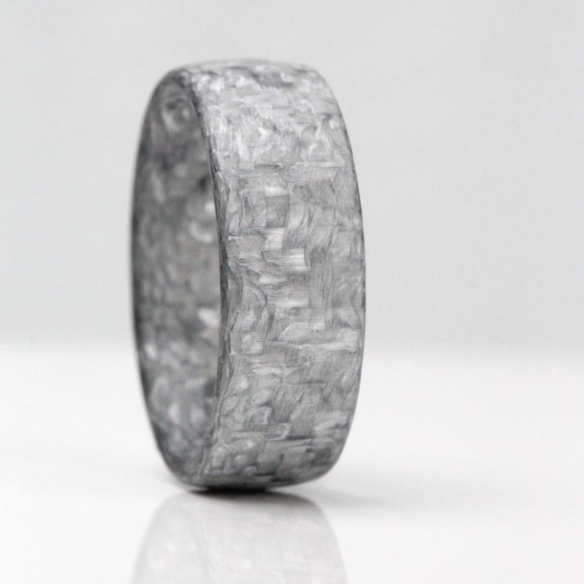 Light Grey Carbon Fibre Wedding Ring Band. Domed outer with Ultra comfort fit inside.