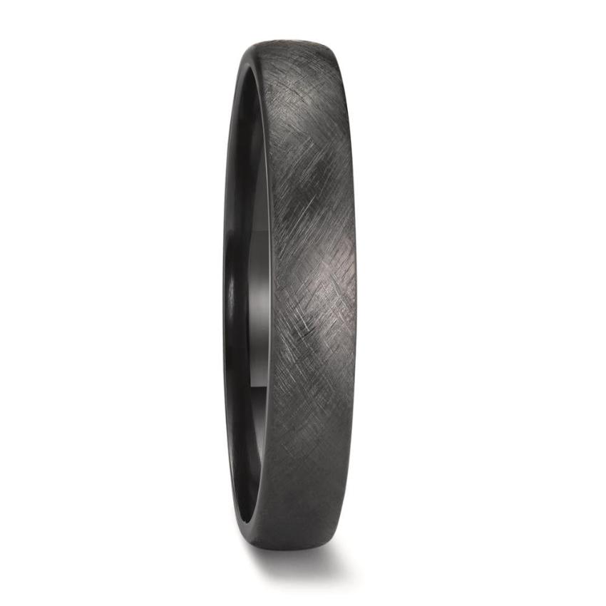 Black Zirconium wedding ring band, offers our unique Ice Effect, brushed, finish. Choose either 3mm or 4mm width, and soft inside curve, makes it ultra comfortable to wear.