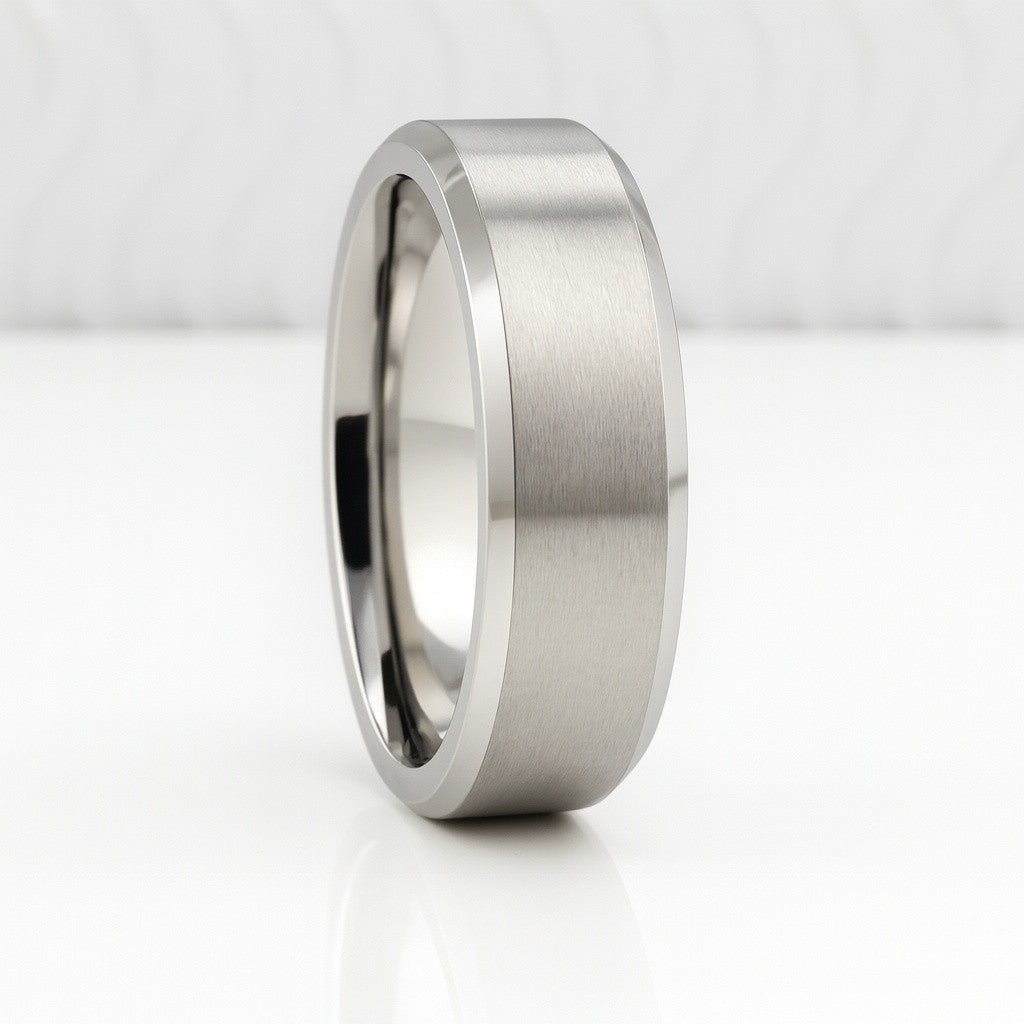 Matte Titanium Wedding Ring with Polished Bevelled Edges – Ultra Comfort Fit