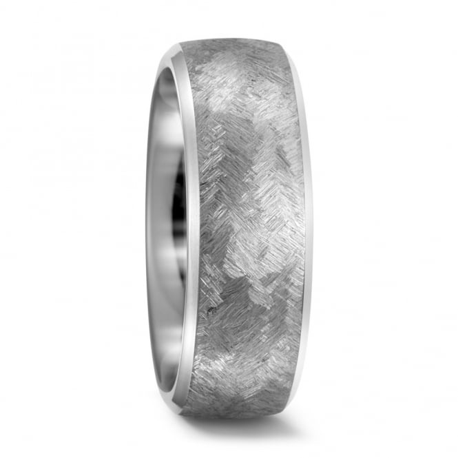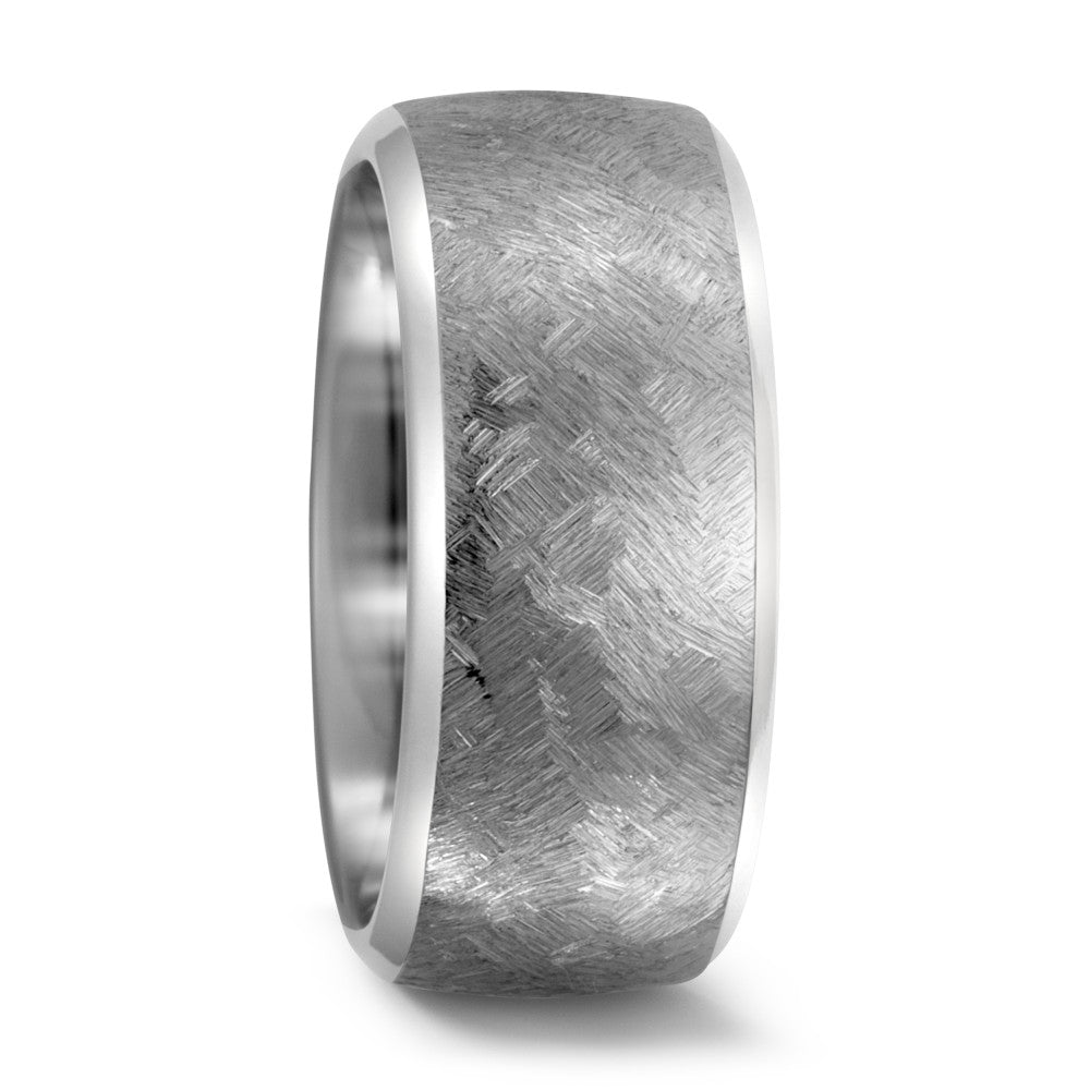 Textured Titanium ring with a polished inside that is suitable for personalised engraving.
