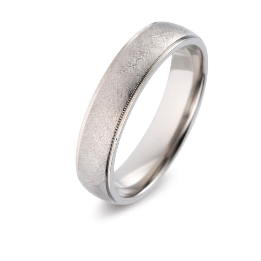 Stepped Edge Titanium ring. Domed outer with an Ice Matt centre section and polished, Ultra comfort fit inside